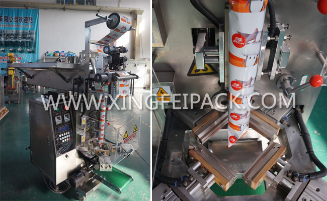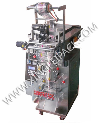 自動鏈斗式包裝機可自動完成計量、填充、封口、打印(需另配打碼機)等周期作業(yè);集光電跟蹤、無級調(diào)速等功能于一體;封口形式為背封;