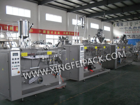 全自動水平式包裝機是一款水平式全自動卷膜成型袋包裝機,是集制袋、計量、灌裝、封口于一體的全新自動包裝機。以熱封性復合膜材料為外包裝,配置各種不同的灌裝頭,可對粉狀、顆粒、液體、粘稠體等不同的物料進行三邊封或四邊封包裝。